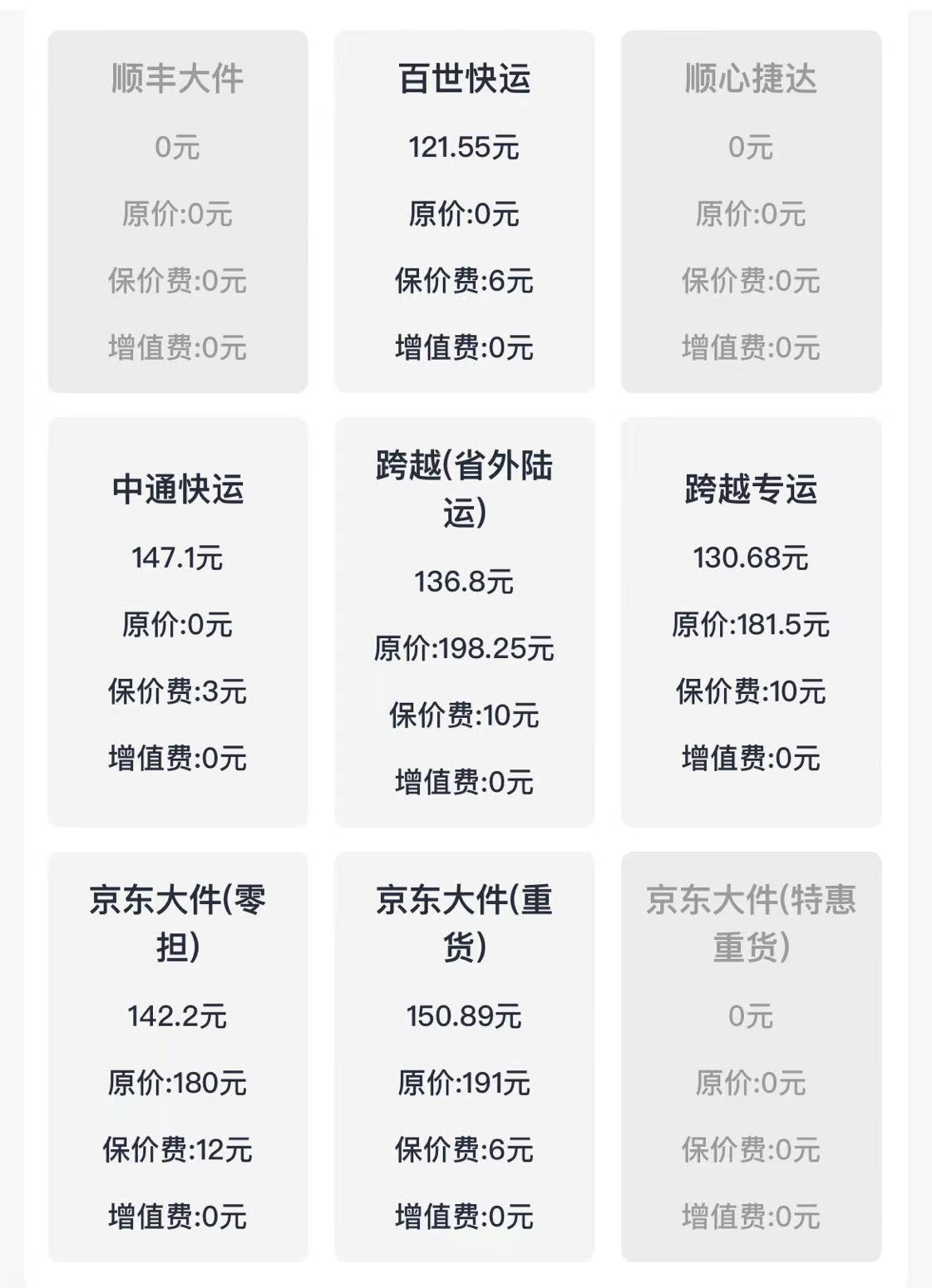 這是深圳市到杭州50KG的價(jià)格對(duì)比數(shù)據(jù),可以參考下:
