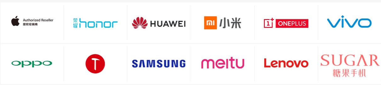 蘋果華為榮耀小米vivoOPPO三星魅族美圖360諾基亞紐曼努比亞尼凱恩索尼飛利浦聯(lián)想創(chuàng)星HTC金立小辣椒8848天語波導黑莓迪美LG米藍索愛譽品朵唯中興酷派索野征服谷歌唯米AGM米語康佳摩托羅拉長虹歐奇海爾夏普摩樂優(yōu)思海信雪豹Sugar優(yōu)尚豐諾亞信捷語VETAS百合青想melrose優(yōu)樂酷歐博信艾爾酷